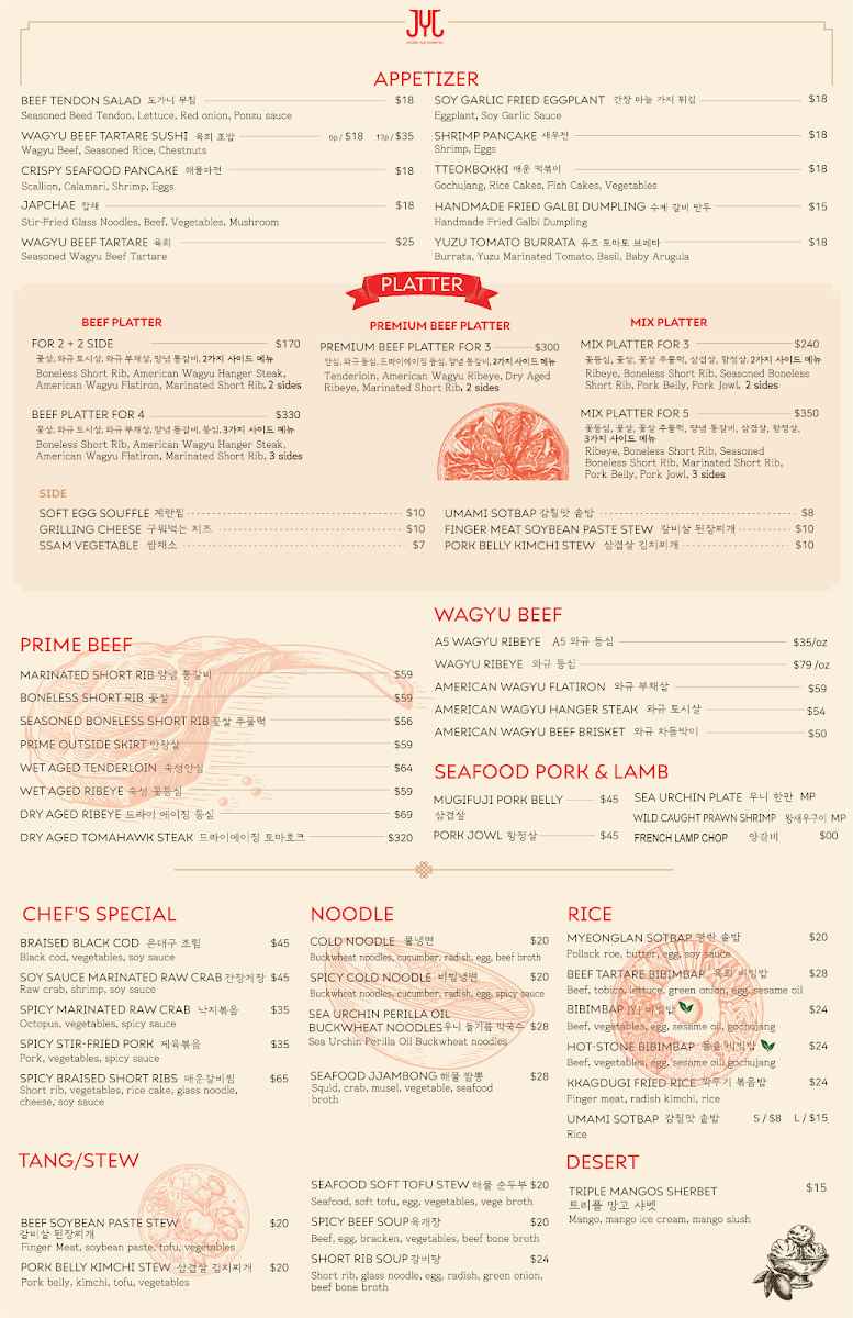 At Jeong Yuk Jeom, every dish tells a story and every bite ignites a passion for Korean flavors. The menu boasts an impressive array of meats, including the extraordinarily tender marinated prime short rib and the rich, savory tomahawk steak. Patrons rave about the melt-in-your-mouth textures and the robust flavors that shine through in every plate. A standout is the in-house dry-aged beef, which has earned praise for its buttery softness and fragrant aroma, making it a must-try for meat lovers.